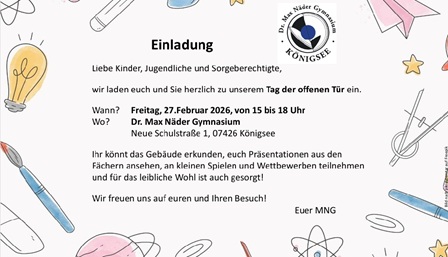 Neben mathematisch - naturwissenschaftlicher Schwerpunktsetzung und Unterstützung durch die Dr. Max Näder - Stiftung bieten wir interessante Betriebspraktika sowie mit den Klassen 5, 6 und 7 das Projekt "Lernen lernen".